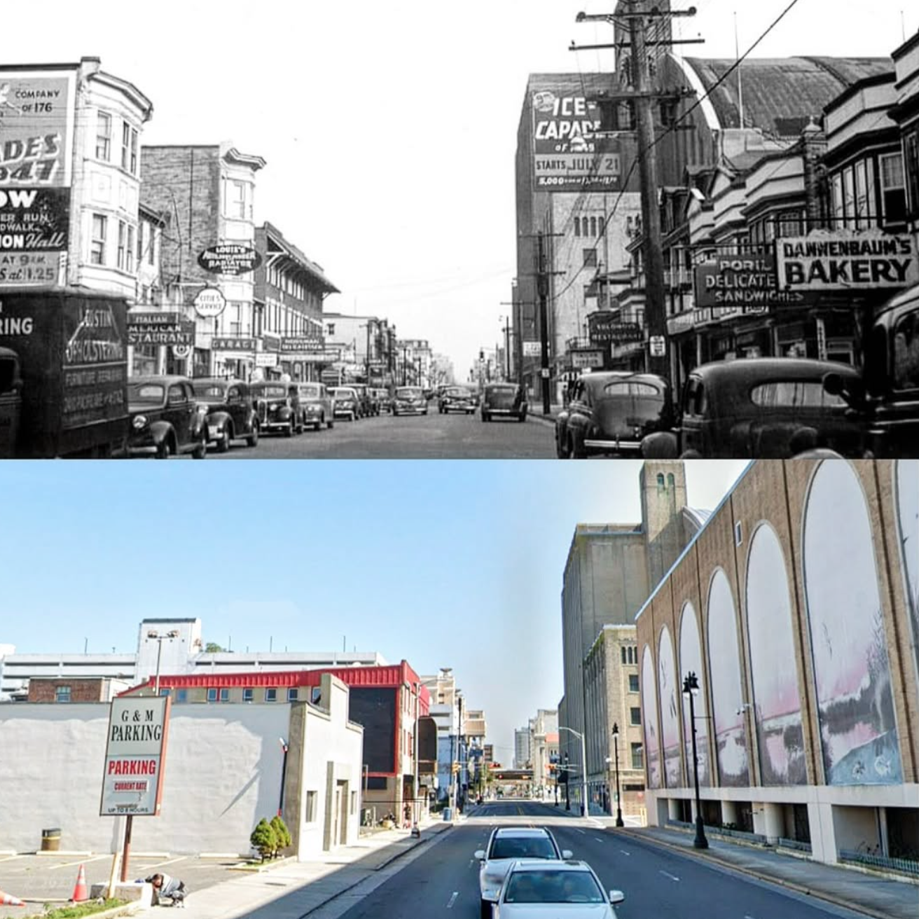 Atlantic City, NJ- Pacific Ave looking towards Georgia Ave in 1949 compared to today.