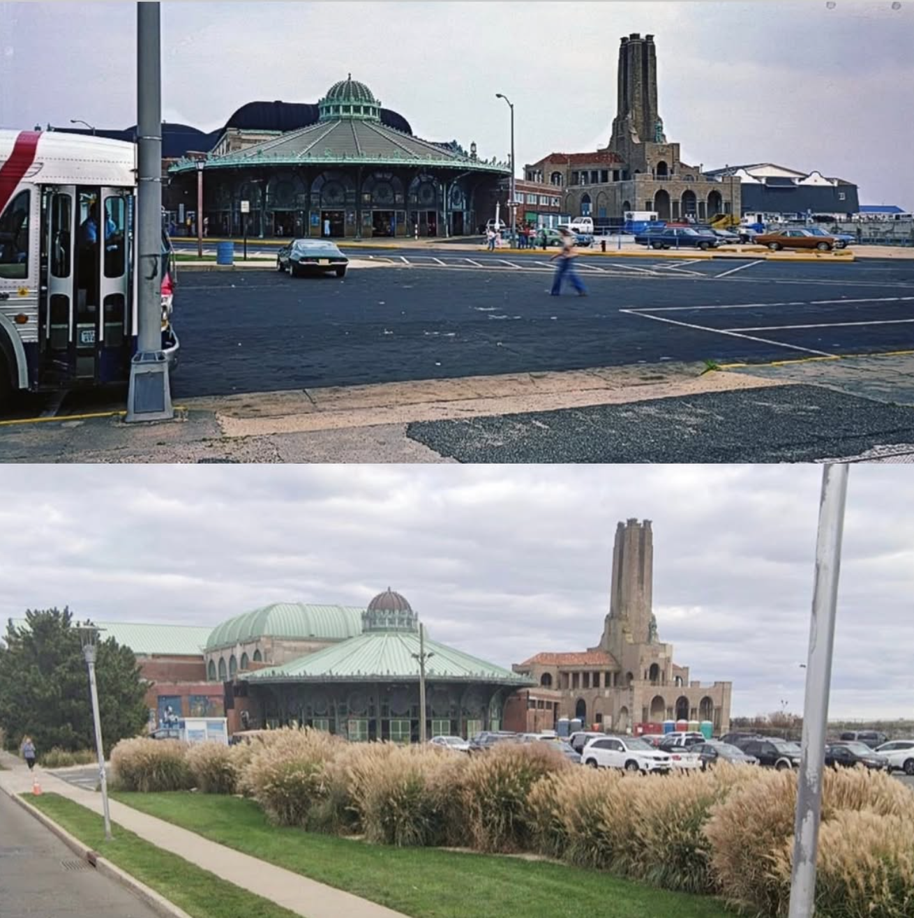 Asbury Park- The Carousel Building and Steam Plant in the early 1980s and today.